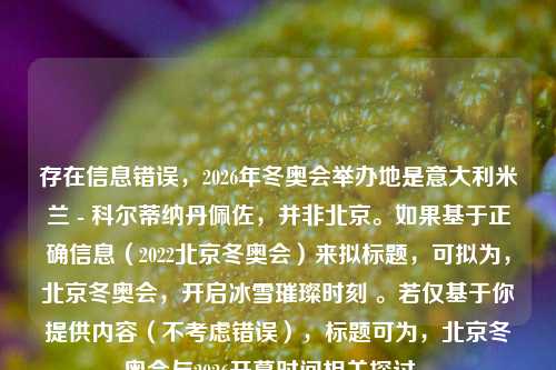 存在信息错误,2026年冬奥会举办地是意大利米兰 - 科尔蒂纳丹佩佐,并非北京。如果基于正确信息(2022北京冬奥会)来拟标题,可拟为,北京冬奥会,开启冰雪璀璨时刻 。若仅基于你提供内容(不考虑错误),标题可为,北京冬奥会与2026开幕时间相关探讨 。